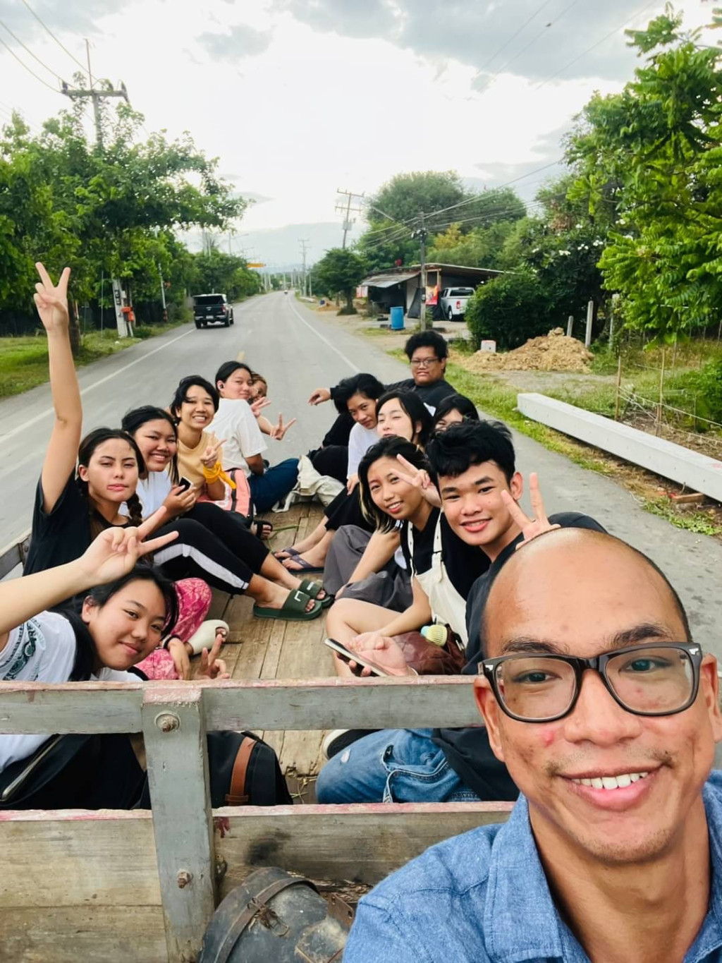 การเดินทางโดยรถตู้ด้วยระยะเวลา 2-3 ชั่วโมง ในที่สุดก็มาถึงสถานที่หมาย สิ่งแรกที่มารอต้อนรับเราเลยคือความร้อนกับแสงแดดที่สาดส่องลงมา นำของสัมภาระต่าง ๆ ลงรถ สถานที่ที่เห็นต่างจากที่คิดไว้ เมื่อนึกถึงหมู่บ้านก็มักมีภาพของบ้านไม้หลังเล็ก ๆ อยู่ไม่เยอะมาก แต่กลับเห็นเป็นบ้านธรรมดาที่สะท้อนสถาปัตยกรรมพื้นถิ่นของชาวไทยทรงดำ
